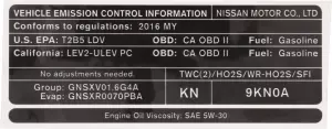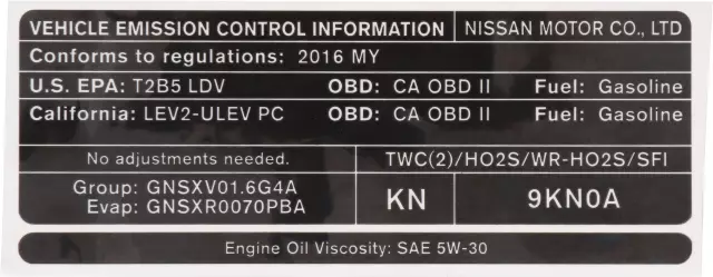 Emission Label - Nissan (14805-9KN0A)